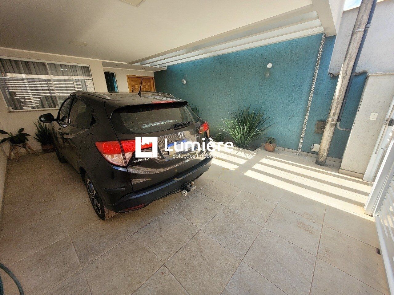 - Garagem coberta com pergolado e portão automático em alumínio
